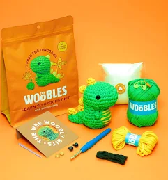 The Woobles Crochet Kit for Beginners with Easy Peasy Loopable Yarn, As Seen on Shark Tank - Easy Arts and Crafts Knitting & Crochet Animals Kit with Step-by-Step Video Tutorials (Fred The Dino)